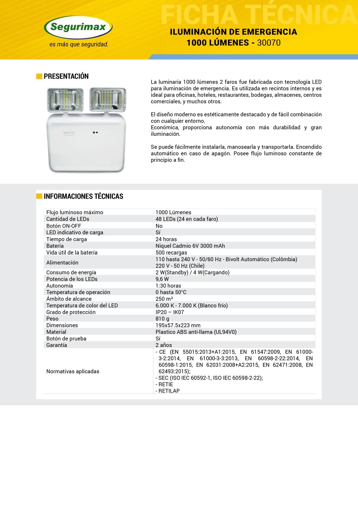 - Color de luz: 6000K