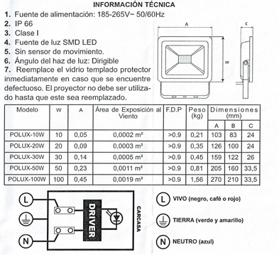 Proyector LED 50 W LUZ FRIA
