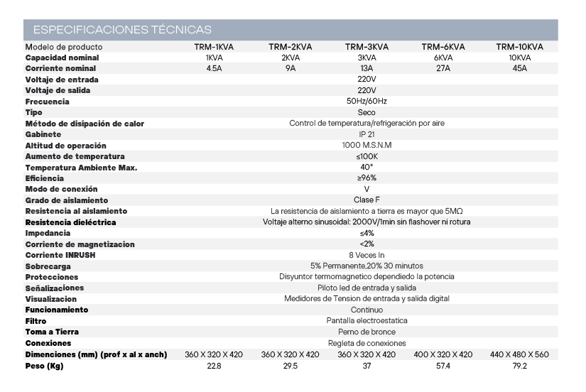-Capacidad nominal de 1 KVA