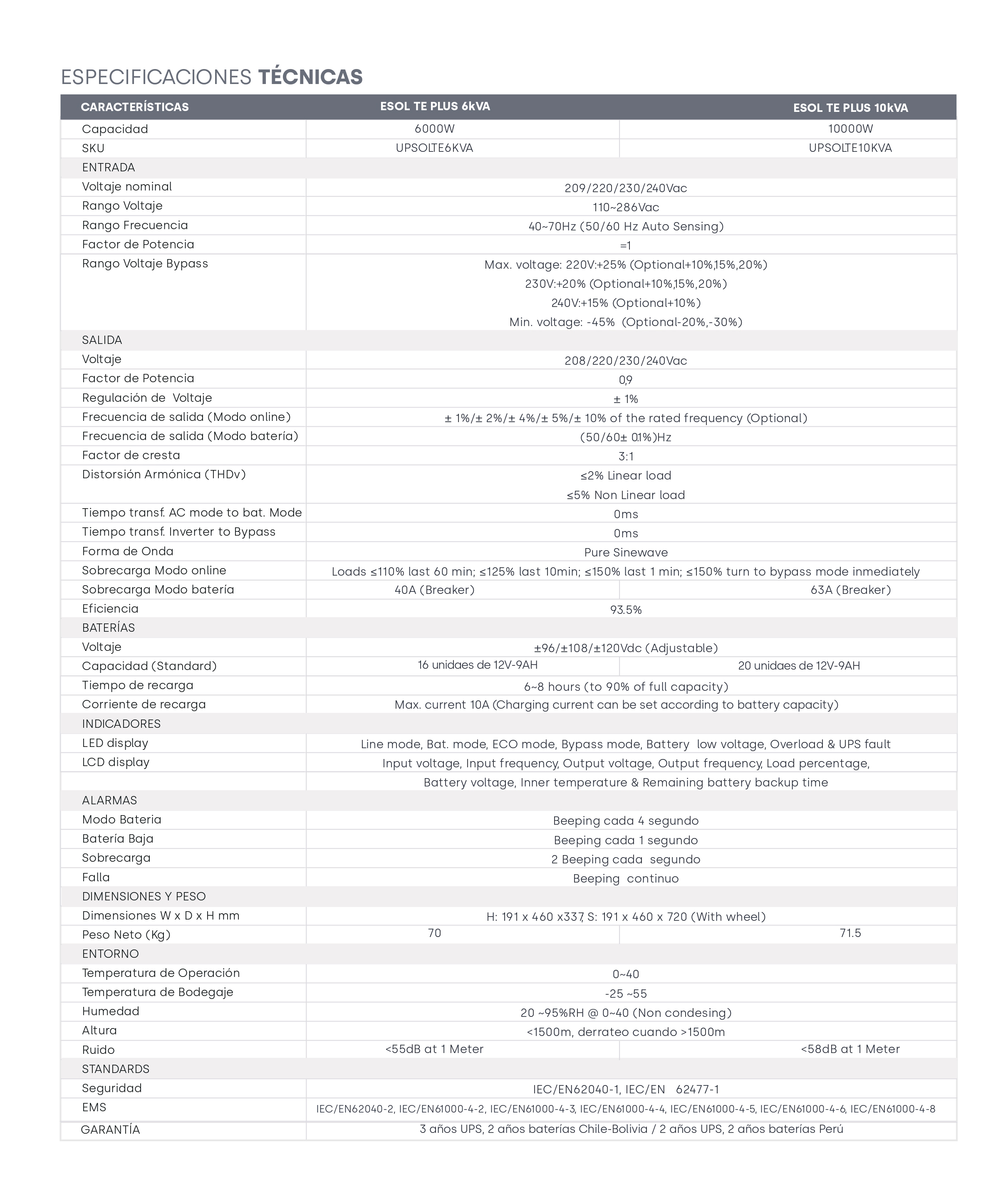 - Potencia 6000VA / 6000W.